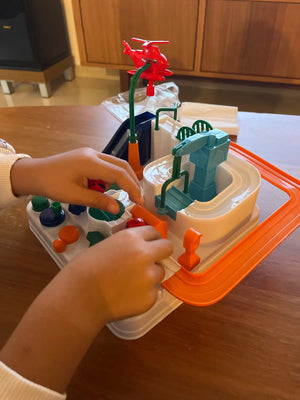 Ideal pentru zile ploioase: construim trasee complexe, copilul exersează răbdarea și logica, iar noi vedem rezultate în jocurile sale imaginative 🙂