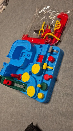 Material robust, opaque plastic rezistent, potrivit pentru joaca zilnică; încurajează creativitatea și curiozitatea mecanică.